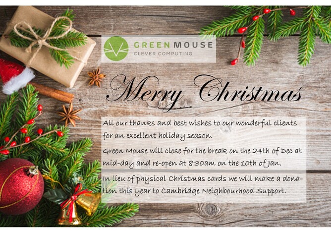 Green Mouse will close for the holidays at mid-day on the 24th of December.